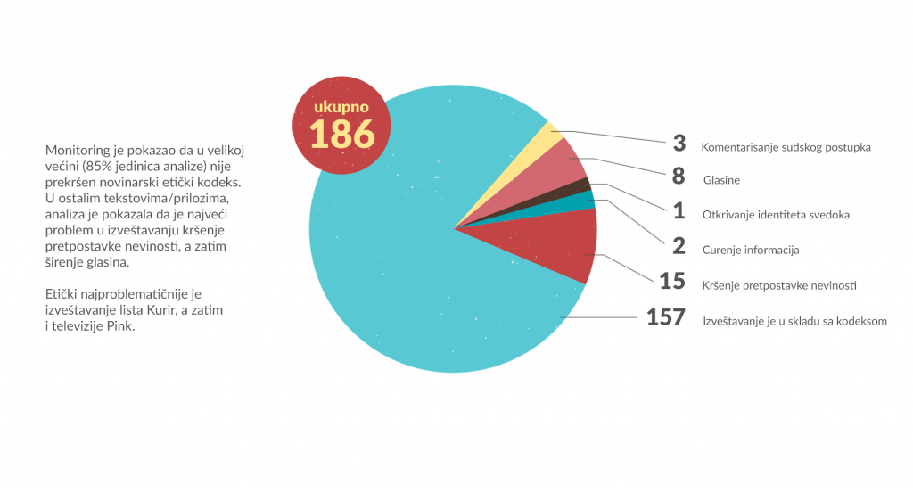 6. Pored senzacionalizma i pristrasnog izveštavanja, najučestaliji etički problemi su kršenje pretpostavke nevinosti i širenje glasina.